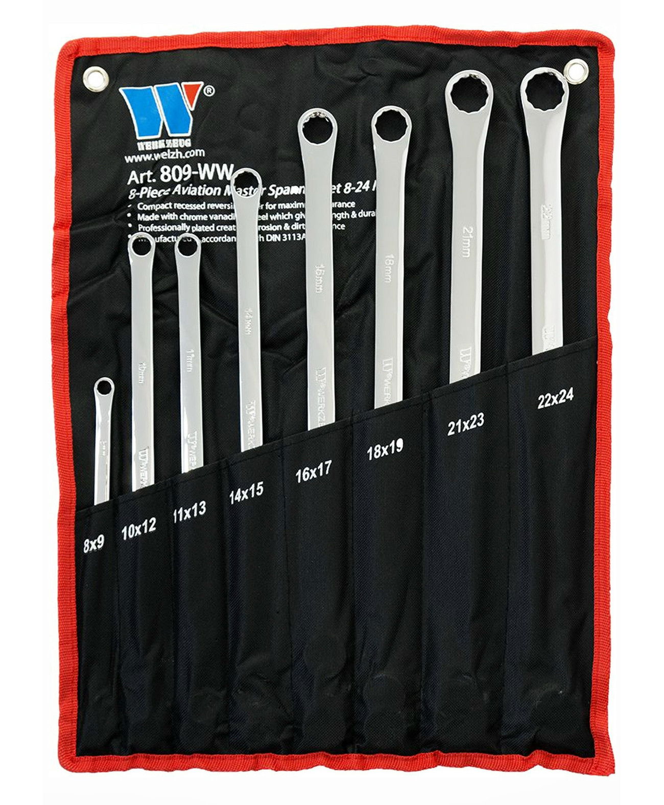 Welzh Werkzeug 809-WW csillagkulcs készlet, egyenes, extra hosszú, metrikus, 8 részes