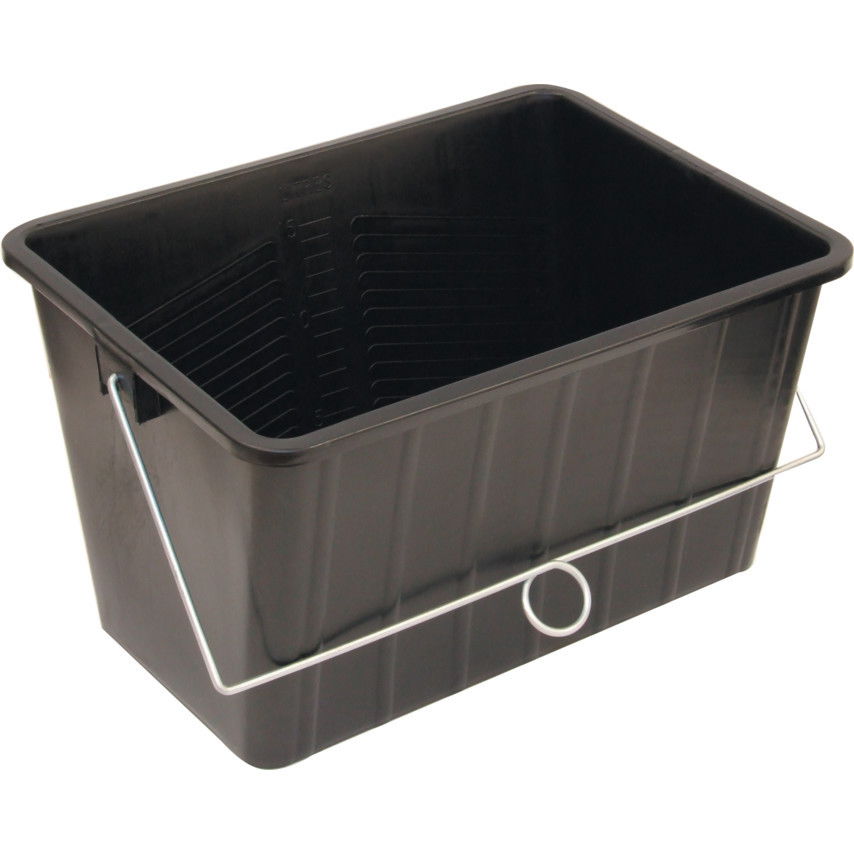 - Fekete műanyag festővödör fém füllel és peremmel a festőhenger rögzítéséhez.